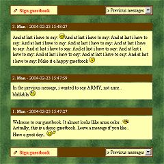 View demoIt is possible to customize the look of your guestbook to every style you like. Click the screenshots to view some examples: